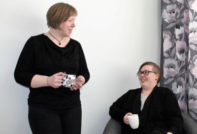 Kuvassa Oulun palvelupisteen toiminnanohjaajat Tanja Korkala ja Inka Poikela ohjaavat ja kouluttavat RIKUn tukihenkilöitä. KUVA: Minna Korva-Perämäki.